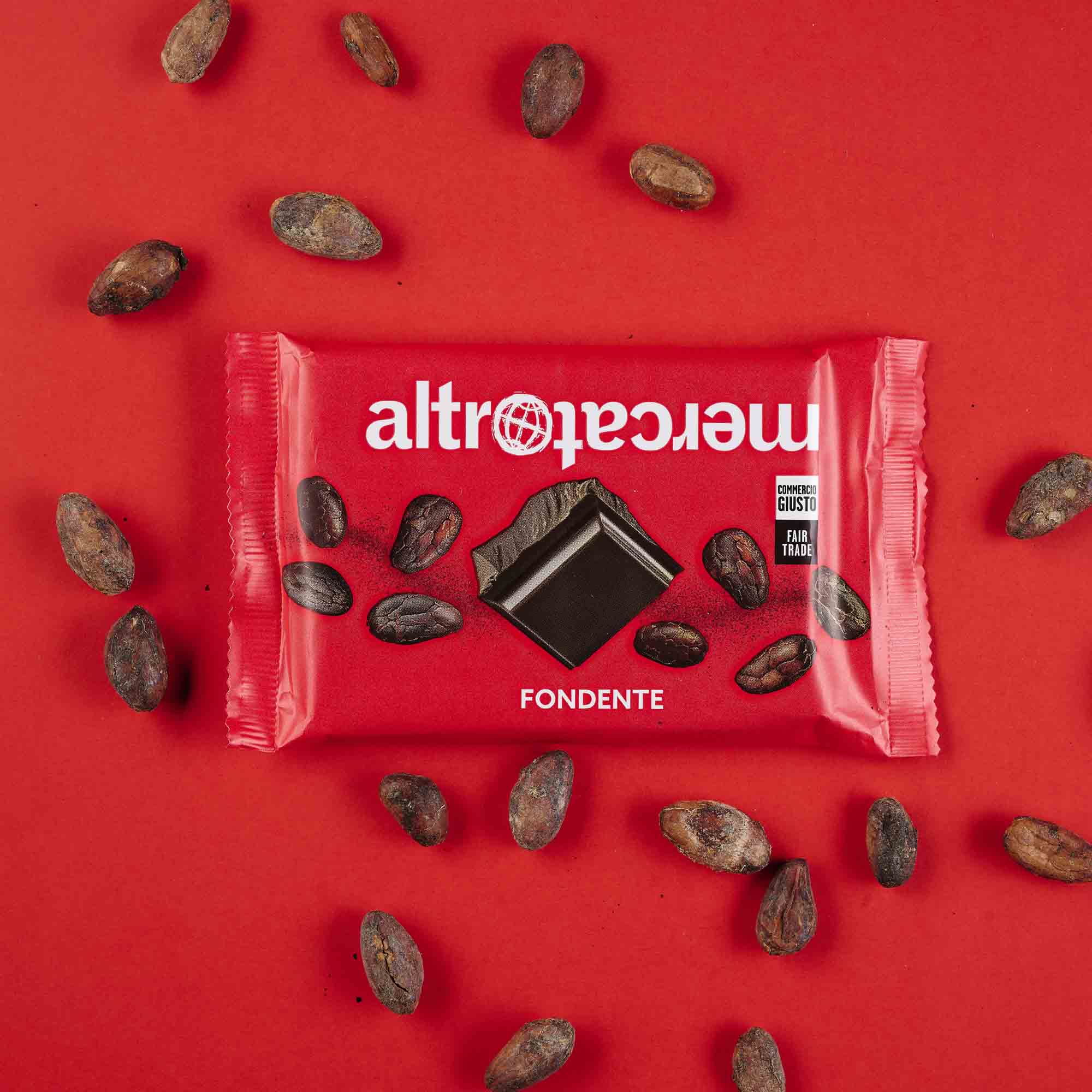 Una tavoletta dal profumo intenso e dal gusto avvolgente, con fave di cacao dalla Colombia coltivato con metodi agroforestali e zucchero di canna da commercio giusto.