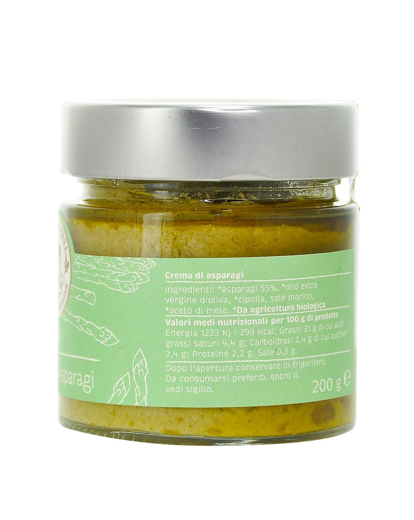 Asparagi 66%, olio e.v. d’oliva, cipolla 10%, aceto di mele, sale marino.