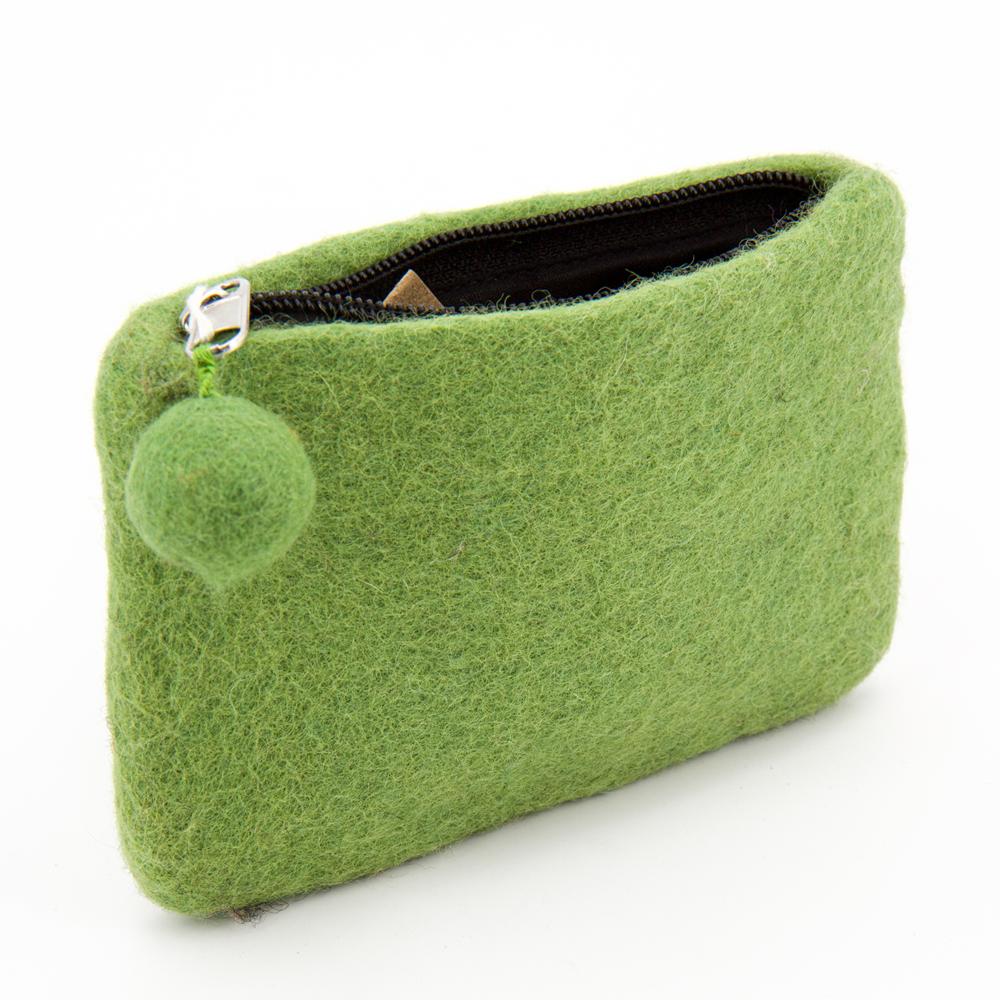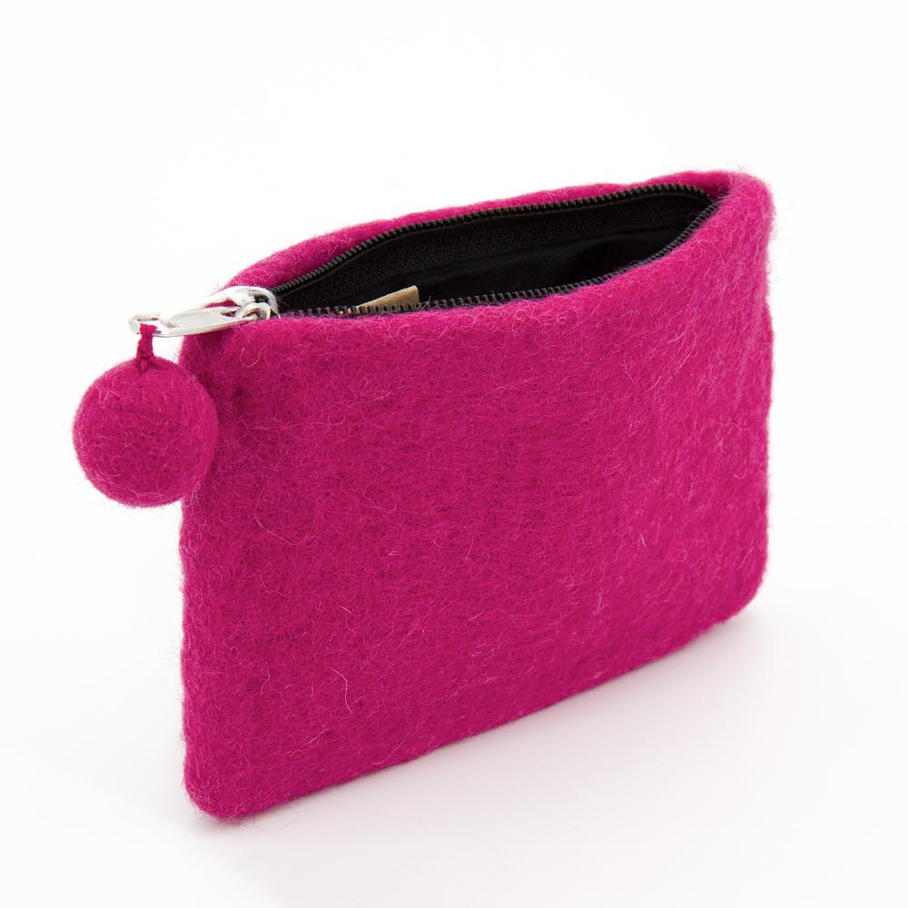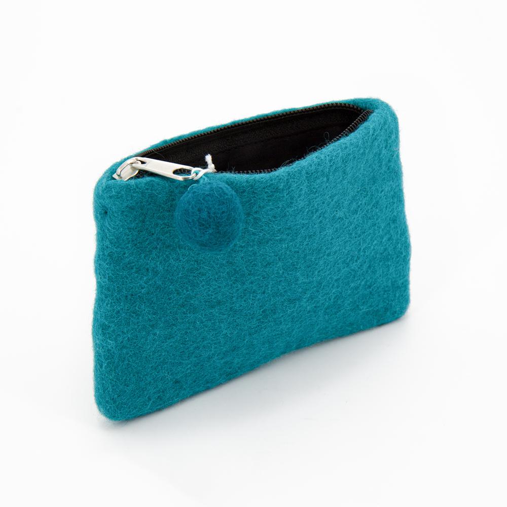 Portamonete in feltro disponibile con i colori turchese, fucsia e verde chiaro. Chiusura con zip. Interno foderato.