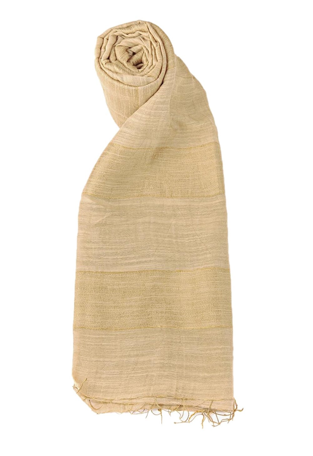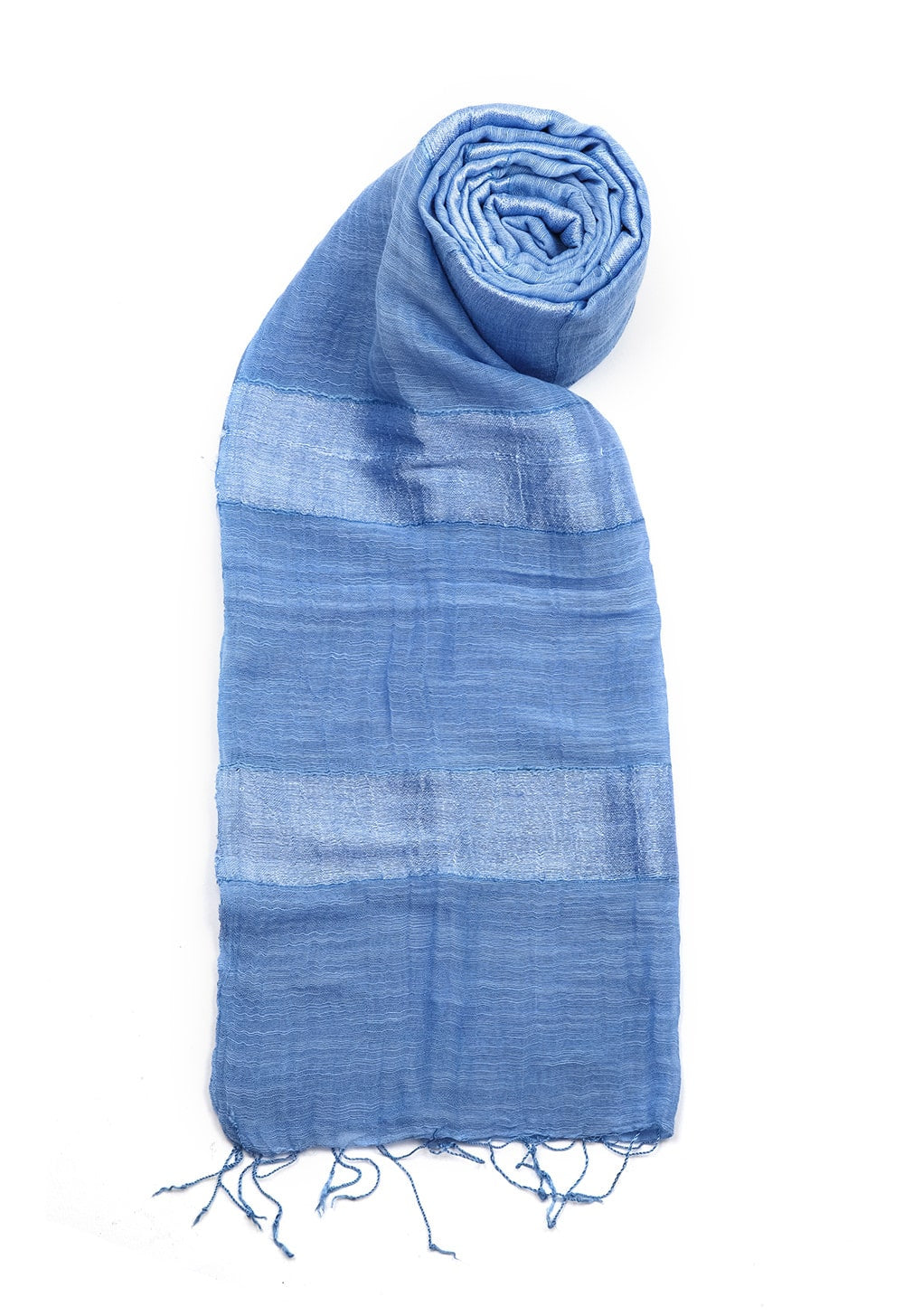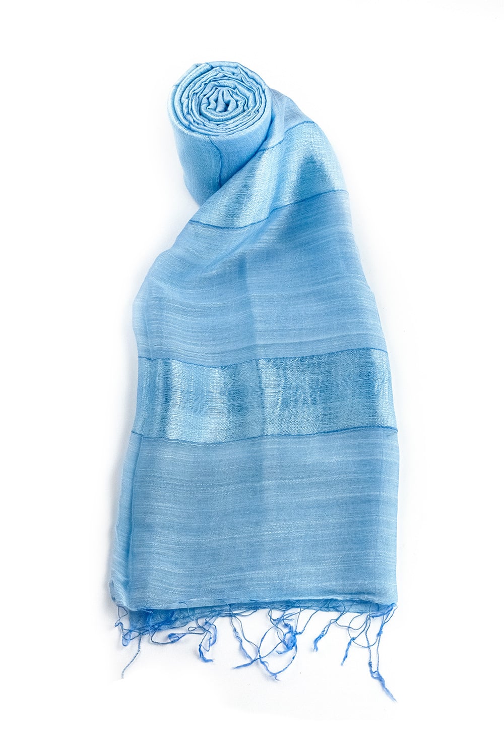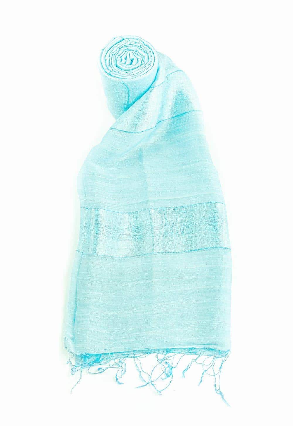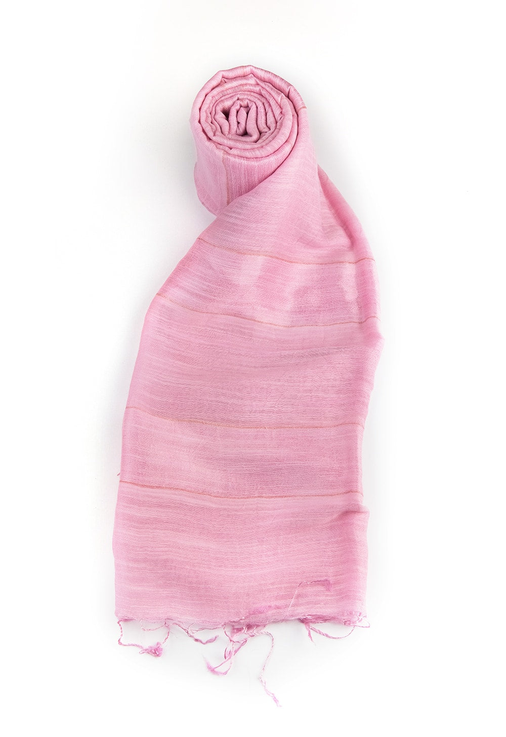 Sciarpa raffinata a righe in seta cangiante, realizzata artigianalmente su telaio in legno e colorata con tinture ecologiche certificate Azo free.